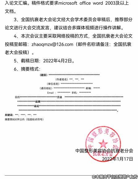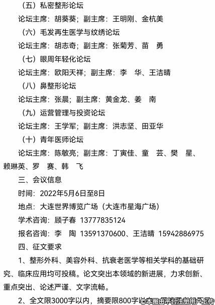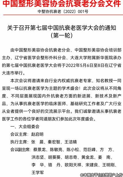由中国整形美容协会抗衰老分会、中国整形美容协会培训部、辽宁省医学会整形外科分会主办,大连大学附属新华医院、大连医科大学附属一院承办的第七届中国抗衰老医学大会将于2022年5月6日至8日在辽宁省大连市举行。