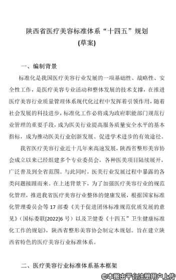 陕西省医疗美容标准体系“十四五”规划(草案)