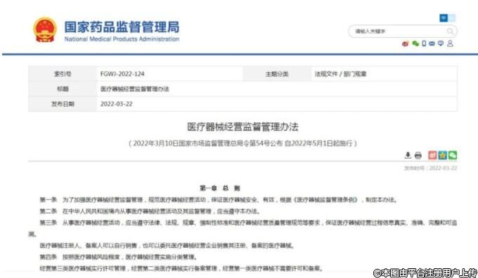 国家药监局发布医疗器械经营监督管理办法 5月1日起施行