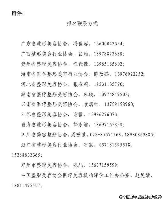 中国整形美容协会医疗美容机构评价工作办公室,赵昊婧,18811495507。
