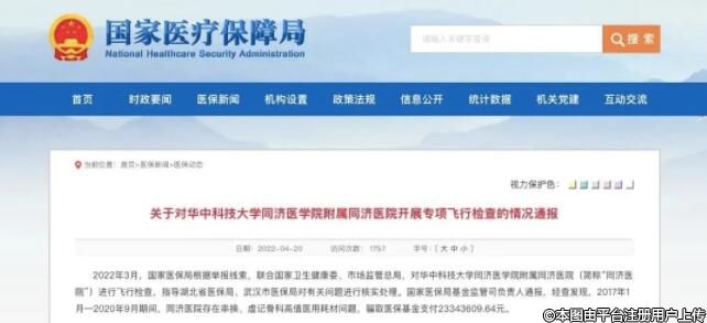 华中科大同济医院骨科违规使用医保基金 被罚超5900 万