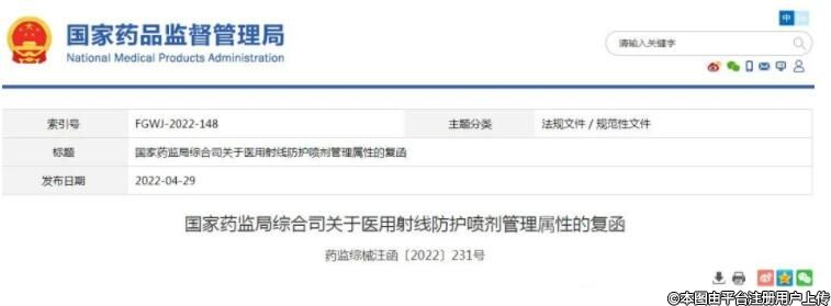 国家药监局:医用射线防护喷剂按第二类医疗器械管理