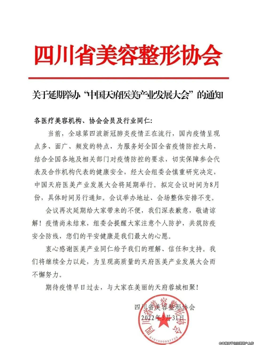延期通知 2022中国天府医美产业发展大会