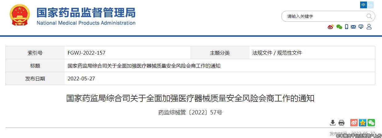 国家药监局发布通知加强医疗器械质量安全风险会商工作