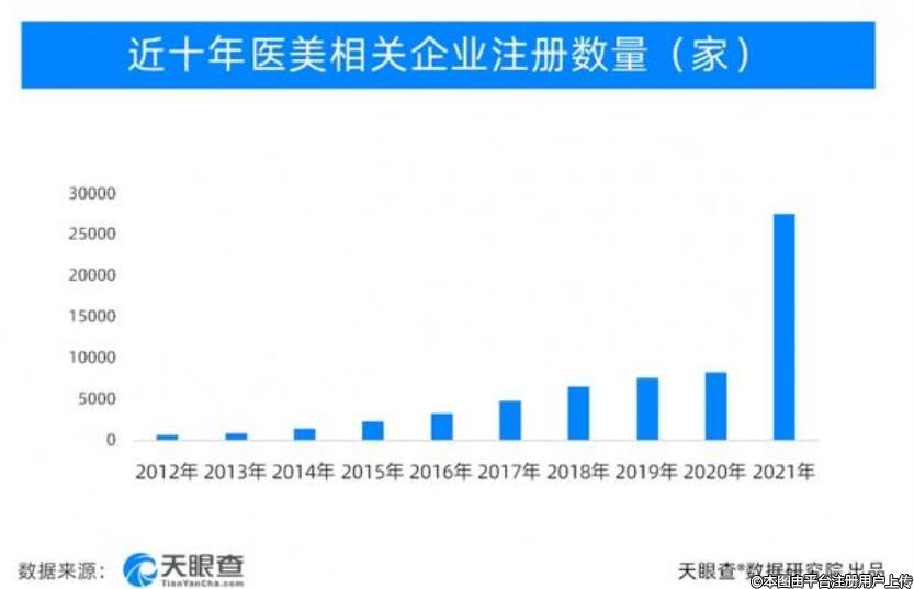 据相关数据显示,我国目前医美相关的企业就有8万余家。受疫情影响,医美机构注册2020年有所减缓。可是疫情得到控制之后,尽管有监管严年,医美机构新增的速度还是快速增长了。其中,2021年新增注册企业2.8万家,增速达70.8%;