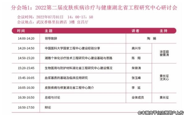 2022年07月01日14:00-17:30 2022第二届皮肤疾病诊疗与健康湖北省工程研究中心研讨会暨2022年第六届武汉协和医院皮肤科专科联盟会议