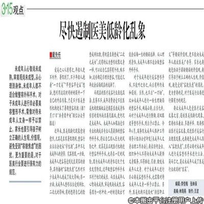 中国消费者报:尽快遏制医美低龄化乱象