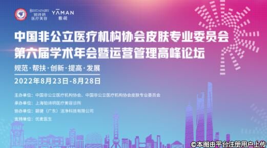为共同促进我国皮肤医学及医疗美容行业的健康有序发展,加强社会办医疗机构与公立医疗机构的合作交流,提升医疗质量和服务水平,经研究,决定于2022年8月24-28日以线上形式举办“中国非公立医疗机构协会皮肤专业委员会(以下简称”专委会“)第六届学术年会暨运营管理高峰论坛”。现诚挚邀请您参加本次会议,有关事项通知如下: