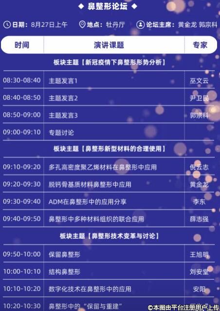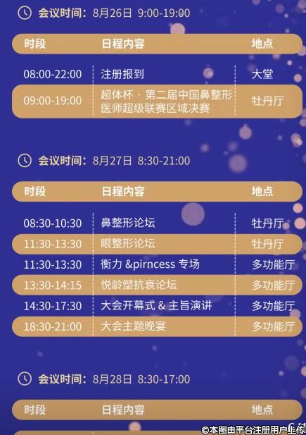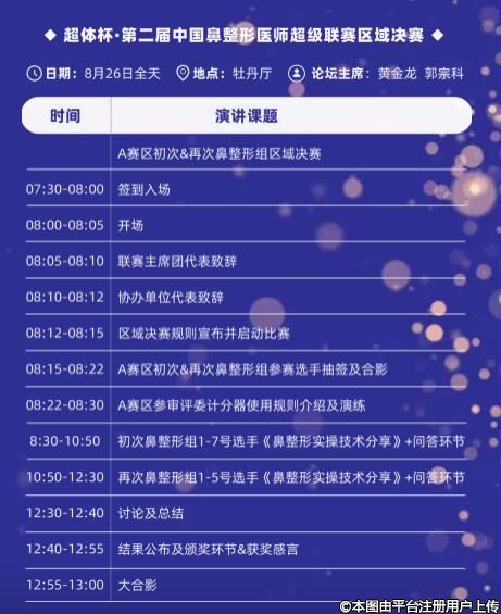 会议期间将同时进行眼鼻整形年轻化实战技术高峰论坛、超体杯·第二届中国鼻整形医师超级联赛区域决赛,并举办眼整形、鼻整形等各个医学美容领域的专题学术论坛。