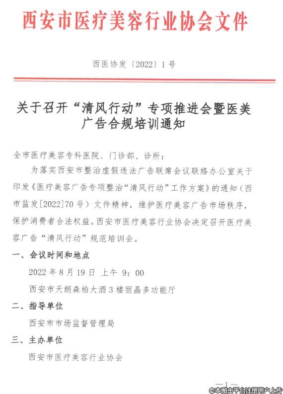 西安市“清风行动”专项推进会暨医美广告合规培训通知