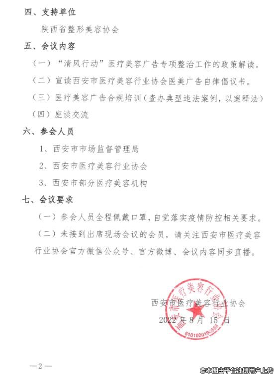(二)未接到出席现场会议的会员,请关注西安市医疗美容行业协会官方微信公众号、官方微博、会议内容同步直播。