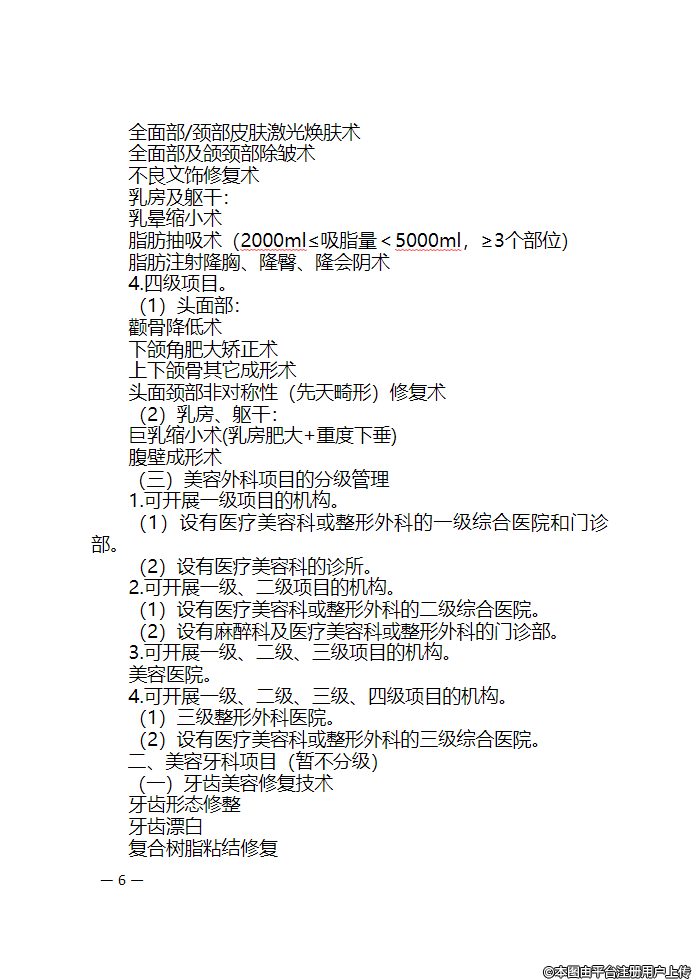 为进一步规范我省医疗美容项目分级,加强美容医疗机构管理,提升医疗美容服务水平,保障医疗美容安全,根据《卫生部办公厅关于印发医疗美容项目分级管理目录的通知》(卫办医政发(2009] 220号) 有关规定,我委结合工作实际,针对美容外科与美容皮肤科部分项目交叉的情况,组织专家调整制定了《湖南省医疗美容项目分级管理目录》(见时件) ,现印发给你们,自本通知下发之日起执行。其中,美容外科项目实行分级管理,美容牙科美容皮肤科和美容中医科项目暂不实行分级管理。申请美容外科主诊医师资格认定的执业医师,所申请的项目不得超出所注册医疗机构相对应的级别项目范国。