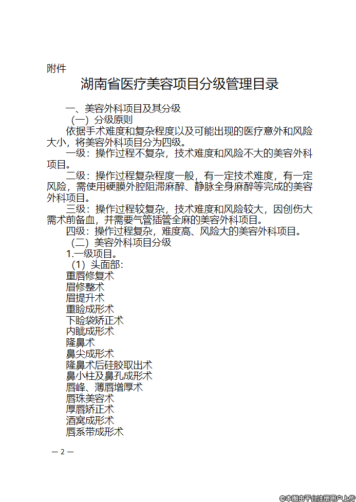 湖南省卫生健康委关于印发《湖南省医疗美容项目分级管理目录》的通知