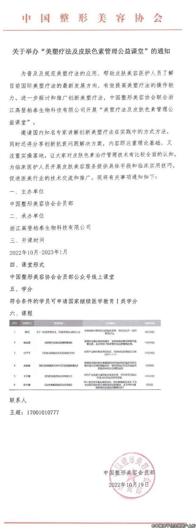 为普及及规范美塑疗法的应用,帮助皮肤美容医护人员了解目前国际美塑疗法的最新发展方向,有效提高美塑疗法的操作能力。进一步探讨和推广创新美塑疗法,中国整形美容协会联合浙江高登柏泰生物科技有限公司开展“美塑疗法及皮肤色素管理公益课堂”。