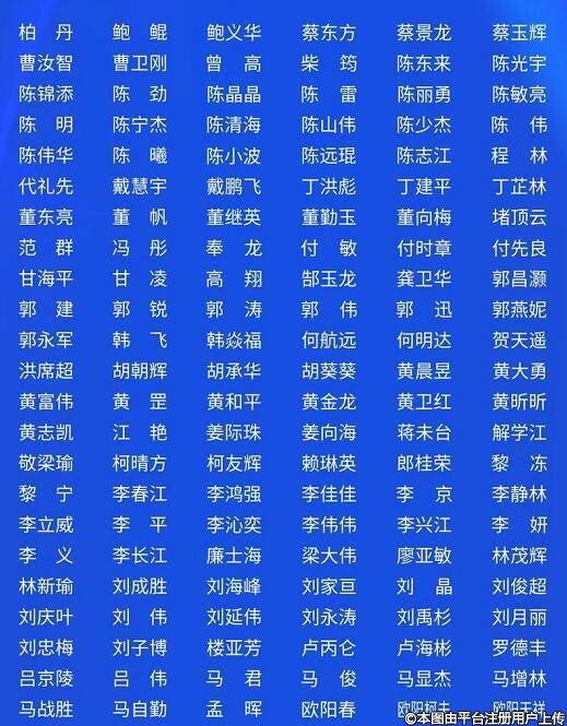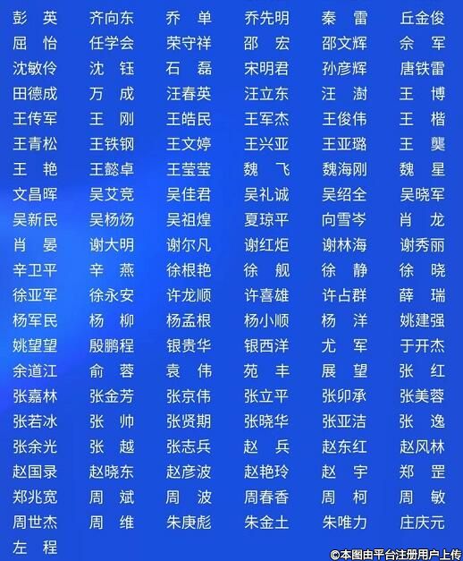 曹卫刚、曾高、陈东来、陈光宇、陈继革、陈敏亮、陈伟华、丁芷林、董帆、堵顶云、黄和平、黄金井、霍然、姜南、郎桂荣、黎冻、黎青山、李洪生、李健宁、李京、刘成胜、刘伟、卢忠、吕京陵、马显杰、欧阳天祥、亓发芝、齐向东、邵宏、邵文辉、孙中生、瓦庆彪、文昌晖、吴溯帆、吴晓军、吴新民、肖志波、辛卫平、徐根艳、许龙顺、展望、张斌、张若冰、张亚洁、张余光、朱金土