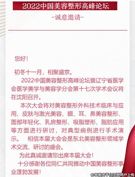 2022中国美容整开高峰论坛暨辽宁省医学会医学美学与美容学分会第十七次学术会议邀请函