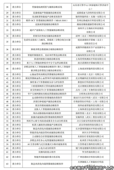 工信部&药监局联合发布《人工智能医疗器械创新任务揭榜入围单位》