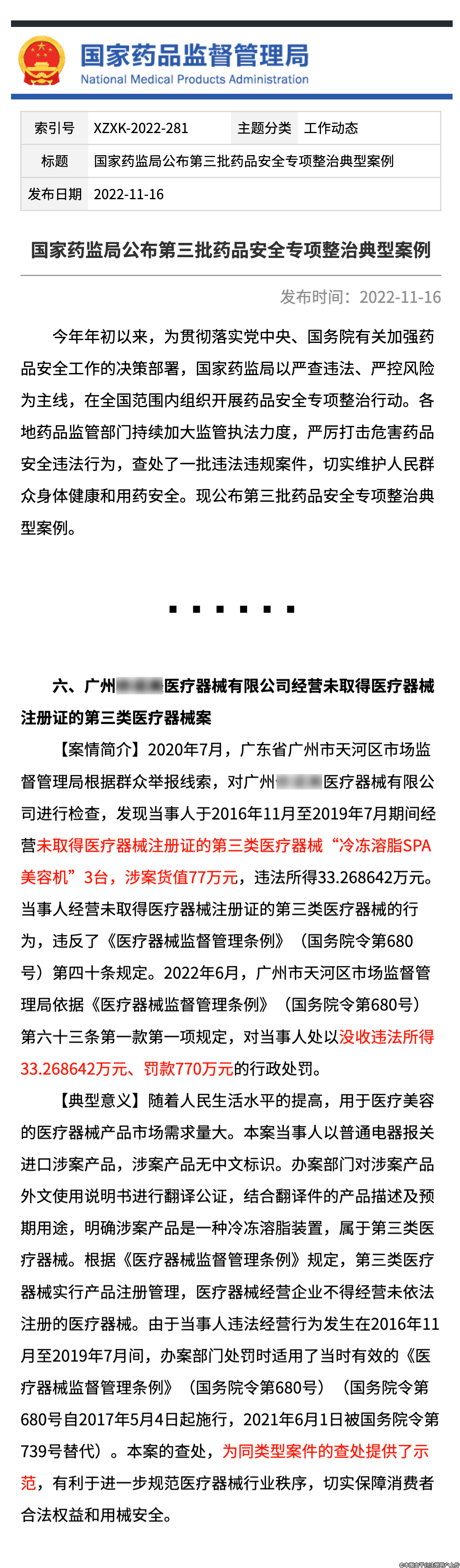 示范案例:经营无证医美三类械 → 货值十倍罚款 770 万
