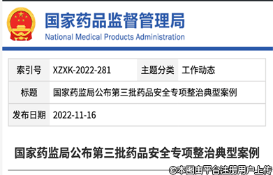 国家药监局公布第三批药品安全专项整治典型案例