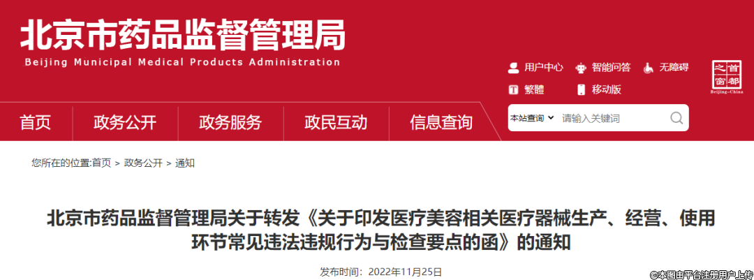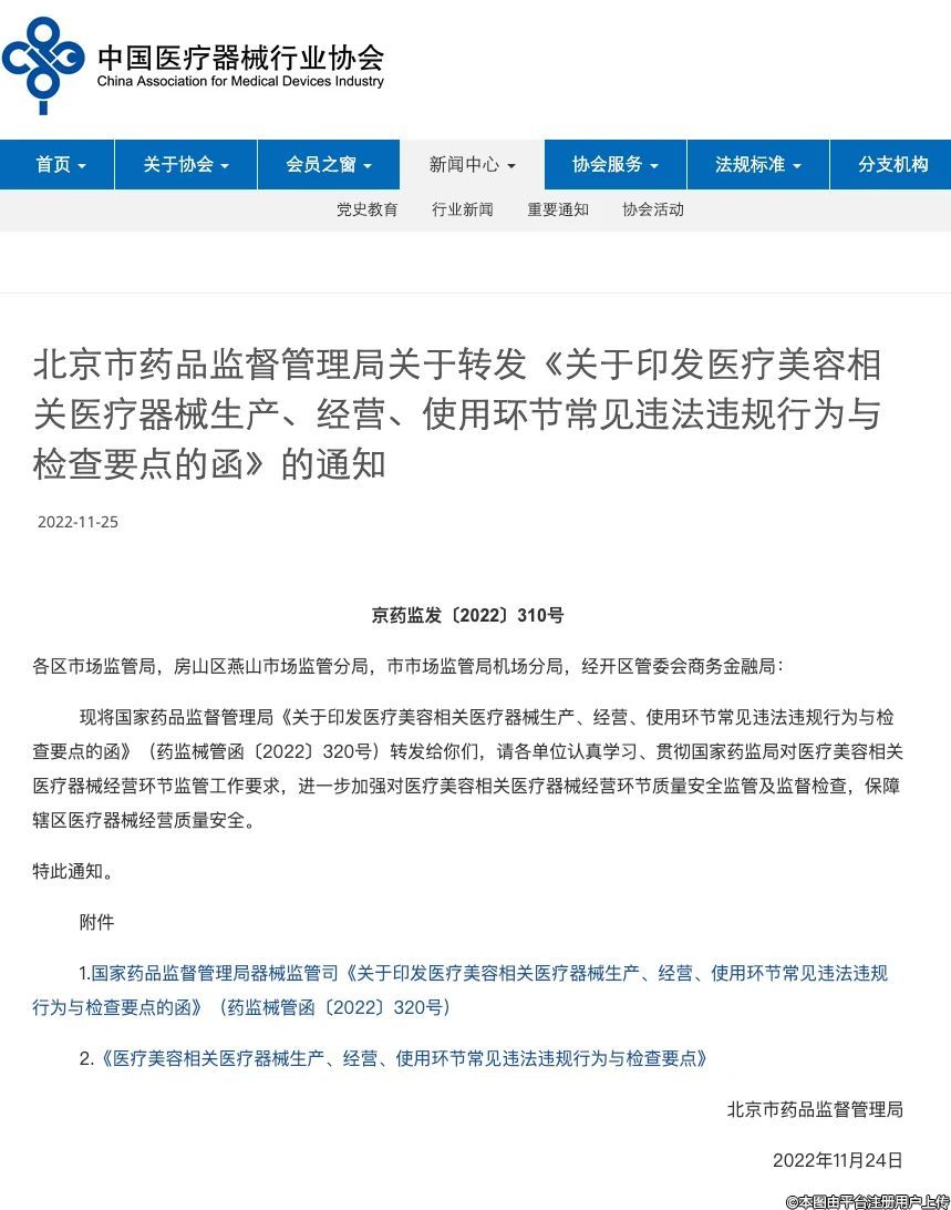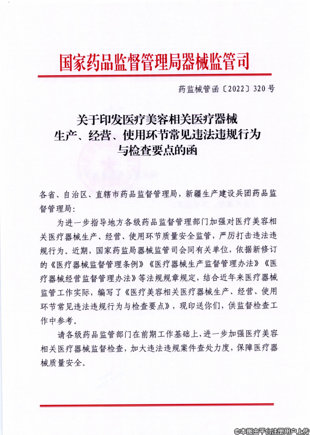 国药监局印发《医疗美容相关医疗器械生产、经营、使用环节常见违法违规行为与检查要点》