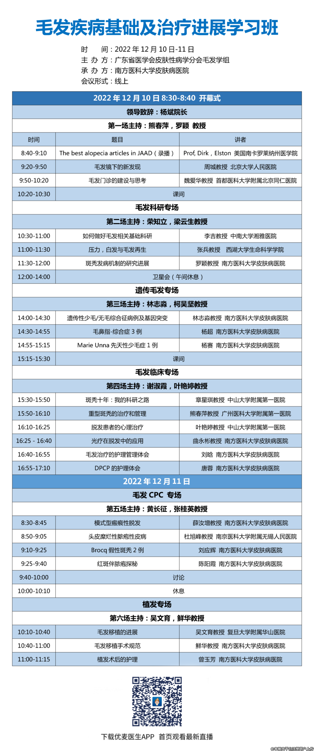 直播预告 2022 年毛发疾病基础及治疗进展学习班