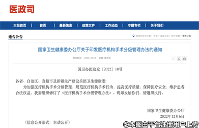 第三十七条本办法自印发之日起施行。《卫生部办公厅关于印发医疗机构手术分级管理办法(试行)的通知》(卫办医政发〔2012〕94号)同时废止。