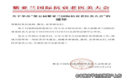 鉴于目前防疫政策放开,经主办方研究决定:第五届紫亚兰国际抗衰老医美大会定于2023年3月2日-4日在深圳会展中心举办。
