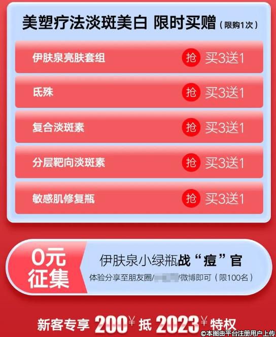 美塑疗法淡斑美白 限时买赠!