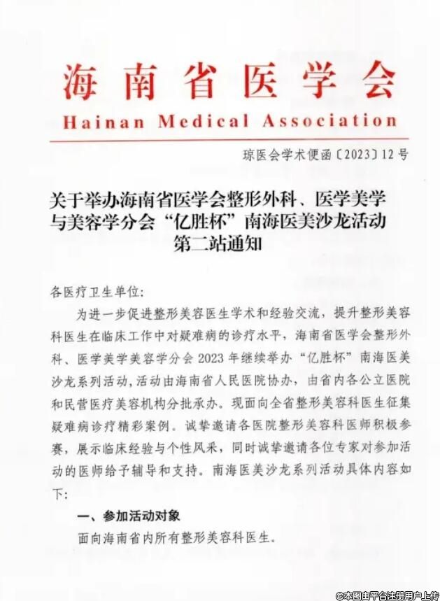 1、参加活动对象:海南省内所有整形美容科医生