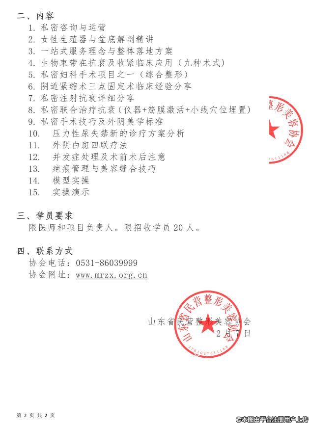 3月8日-9日第21期女性私密整形研修班(高级班)的通知