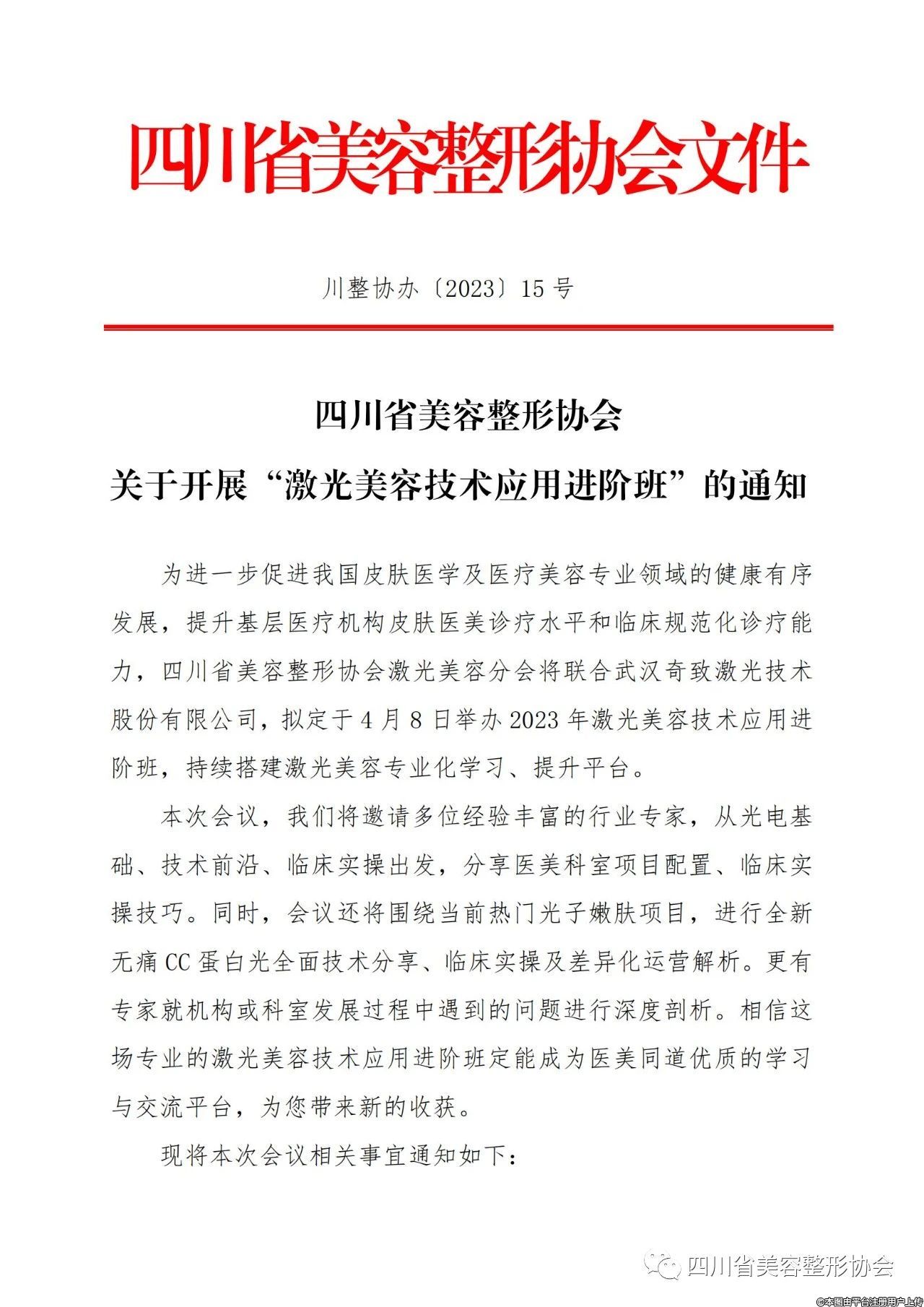 四川省美容整形协会激光美容分会关于开展“激光美容技术应用进阶班”的通知