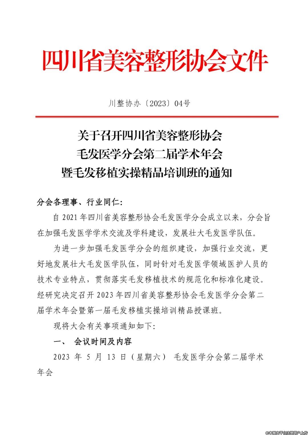 会议通知 四川省美容整形协会毛发医学分会第二届学术年会暨毛发移植实操精品培训班