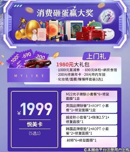 4月特惠 泉州美莱19周年1999元悦美卡(5选1)