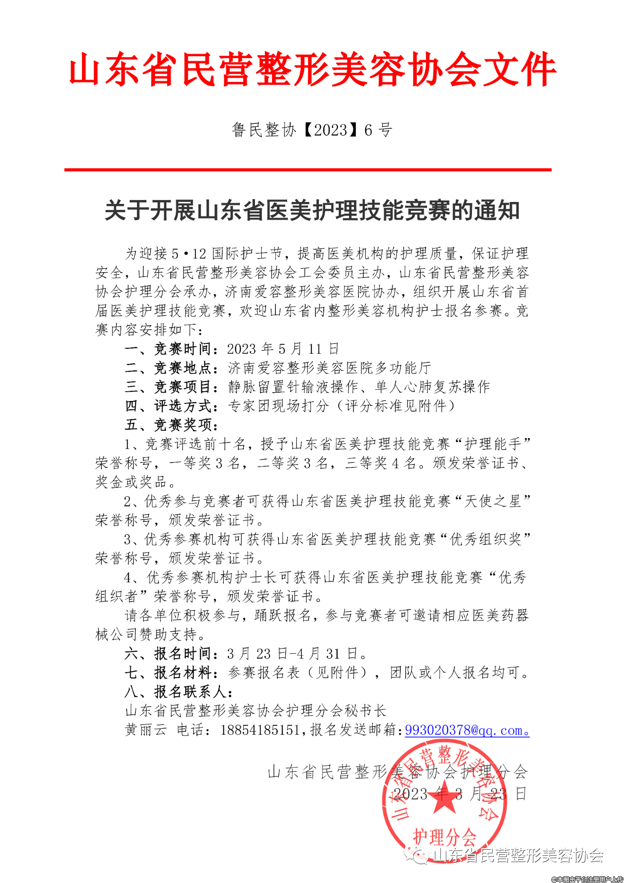 为迎接5·12国际护士节,提高医美机构的护理质量,保证护理安全,山东省民营整形美容协会工会委员主办,山东省民营整形美容协会护理分会承办,济南爱容整形美容医院协办,组织开展山东省首届医美护理技能竞赛,欢迎山东省内整形美容机构护士报名参赛。
