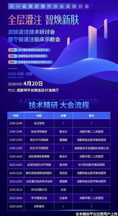 四川美整协美容皮肤分会《皮肤灌注技术研讨会暨冭极灌注临床示教会》会议通知