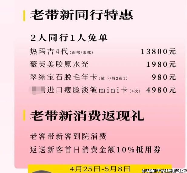还有二人同行,一人免单活动,老会员带新顾客到院还能享受,新顾客首日消费金额的10%抵扣券,当然是肥水不留外人田,喊上小姐妹们,一起来美吧~