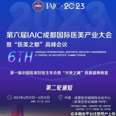 据悉,为持续推动中国医疗美容行业稳健持续发展,提升“医美之都”的国际国内品牌影响力,中国整形美容协会与成都医药健康产业生态圈联盟,将于2023年6月23日在成都世纪城国际会议中心,联合主办第六届IAIC成都国际医美产业大会暨“医美之都”高峰会议。