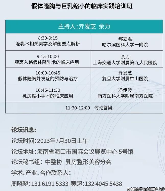 乳房假体隆胸与巨乳缩小培训班由中整协乳房整形美容分会承办,邀请国内顶级临床一线专家,从临床实际出发,注重细节,结合临床实际问题,以期提高乳房整形从业人员的临床诊治水平。