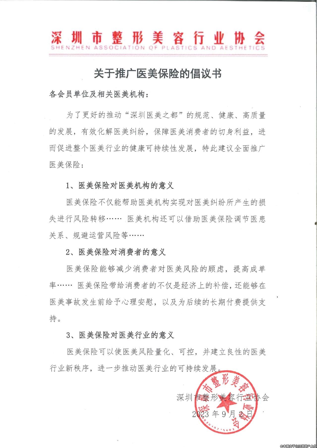 为了更好的推动“深圳医美之都”的规范、健康、高质量的发展,有效化解医美纠纷,保障医美消费者的切身利益,进而促进整个医美行业的健康可持续性发展,特此建议全面推广医美保险。
