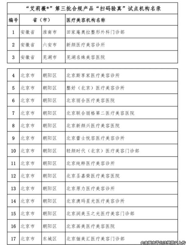 根据通知中“扫码验真试点机构”入选标准及流程,截至2023年8月31日审核通过108家医疗美容机构为第三批合规产品“扫码验真试点机构”(具体名单见附件)。现予以公布。