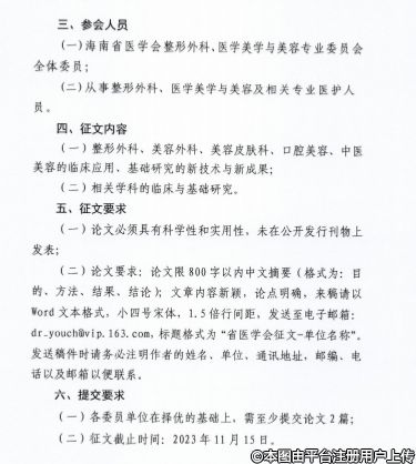 海南省医学会关于召开整形外科、医学美学与美容分会2023学术年会的通知
