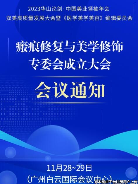 各位医美人,又有一个专委会成立是了,《医学美学美容》编辑委员会同意了的。11月28日-29日瘢痕修复与美学修饰专委会成立大会将在广州白云国际会议中心开幕,欢迎大家来参加。