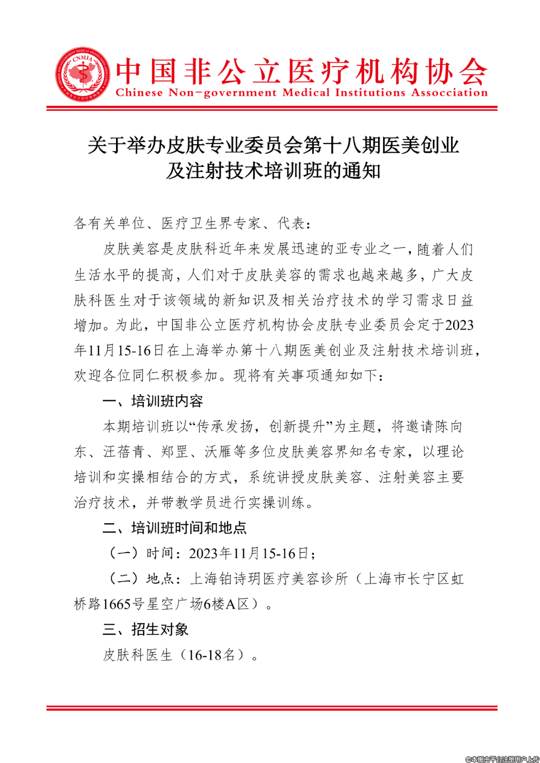 中国非公医协皮肤专委会第十八期医美创业及注射技术培训班