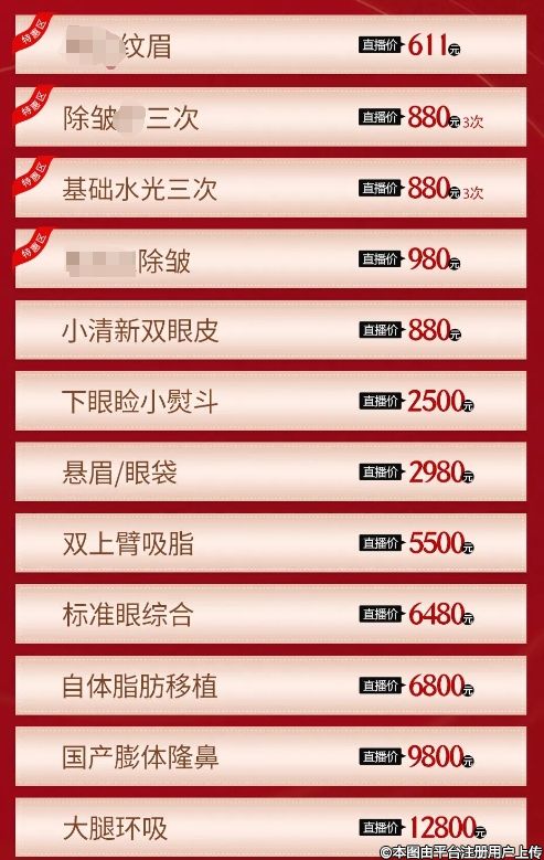 百余种项目价格美丽