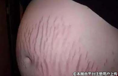 怀孕期间妊娠纹:妊娠纹是紧挨着皮肤的弹性支撑组织发生变化引起的。妊娠纹一开始时呈粉色、红褐色、紫色或深褐色。