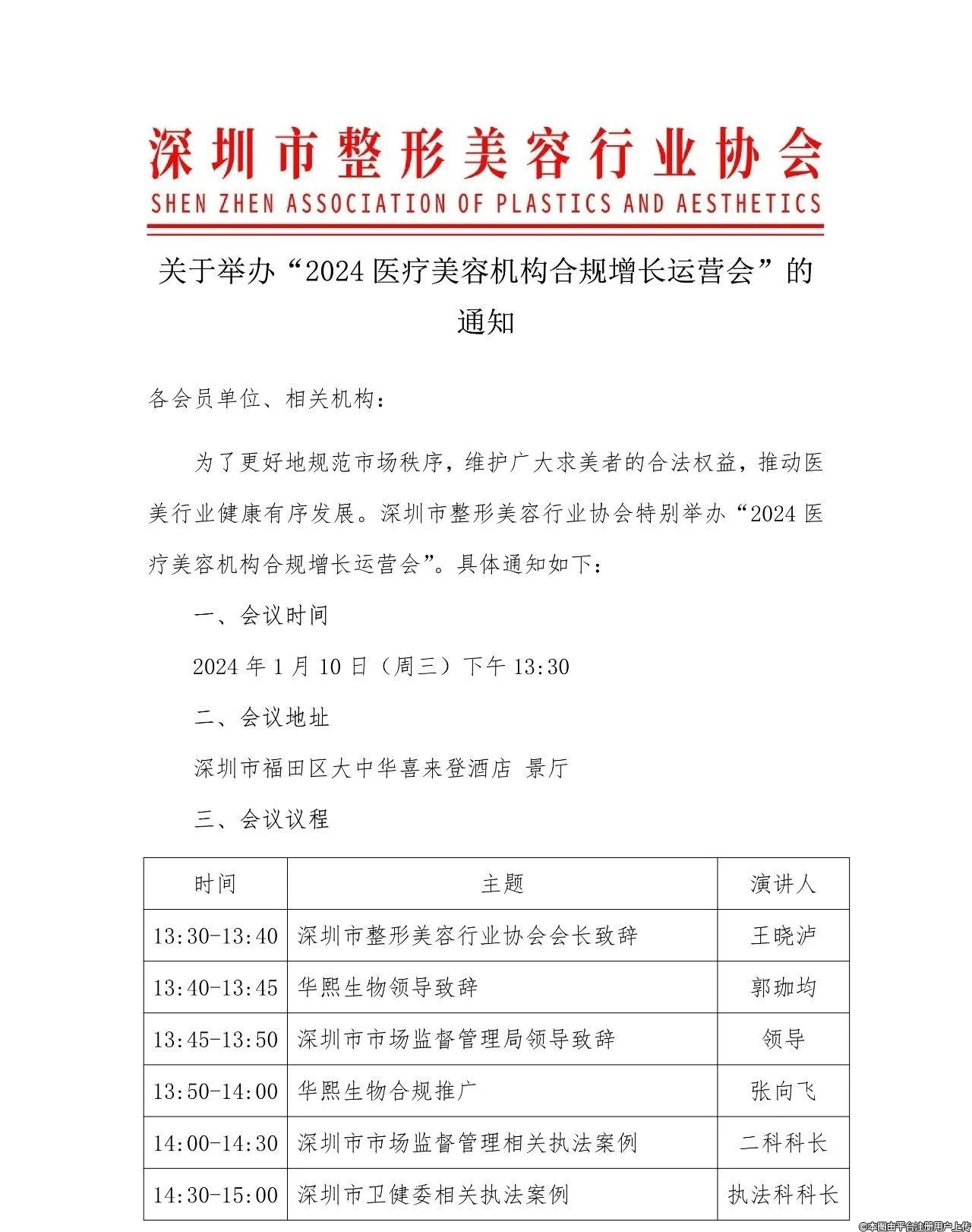 关于举办“2024医疗美容机构合规增长运营会”的通知
