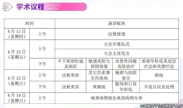 会议无论是规模、学术领域还是行业展示都将再次突破以往,带给与会者们席卷心灵的震撼!我们力求打破传统,让每一个与会者都能不虚此行、超越期待!2024年4月11日,让我们共同续写新辉煌,书写属于激光美容和面部年轻化领域的新篇章!