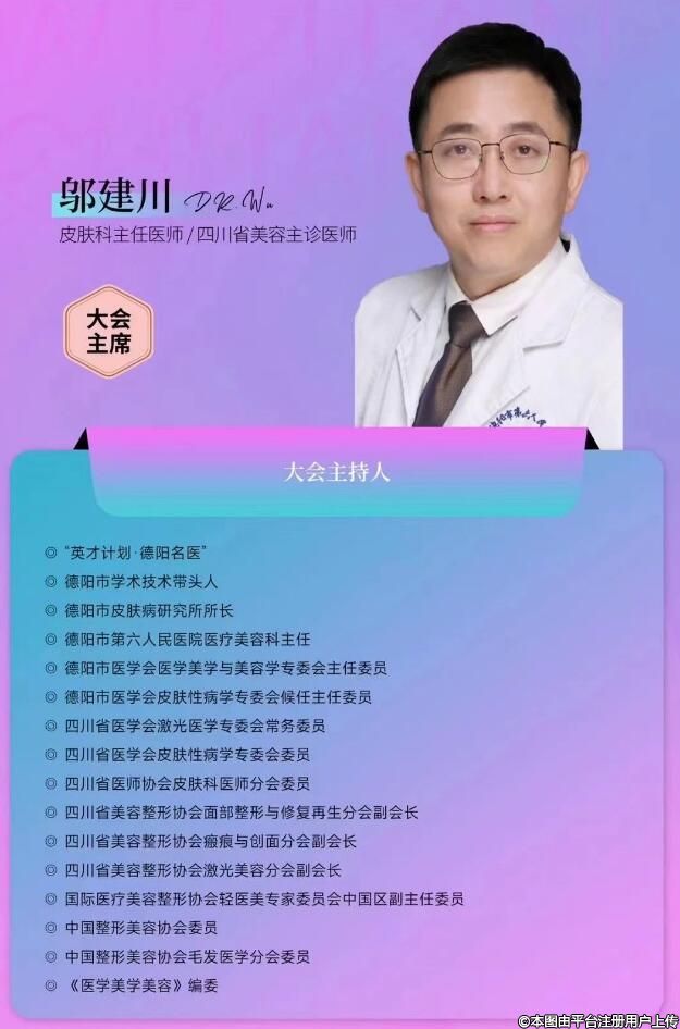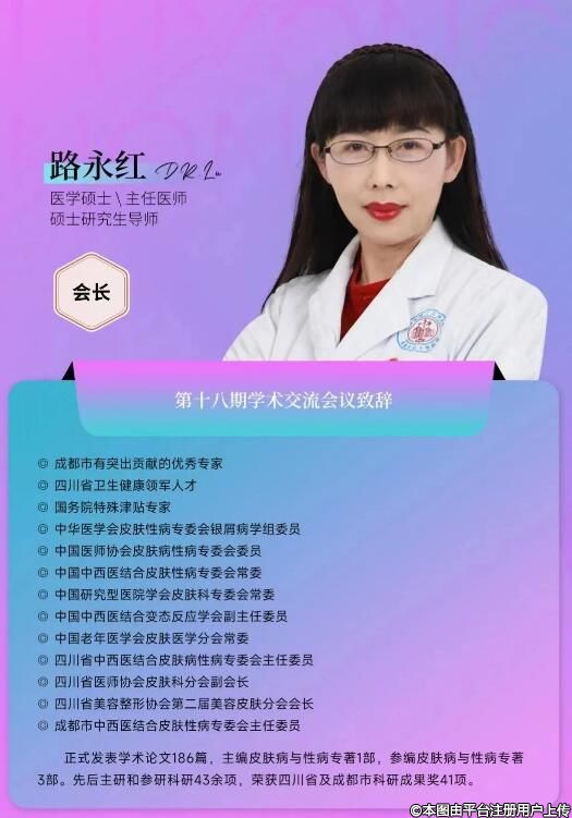 本期大会主席由成都市第二人民医院路永红教授和德阳市皮肤病研究所所长邬建川共同担任。