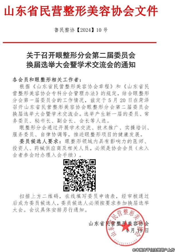眼整形分会通过开展学术交流、技术推广、实操培训、服务委员、自律协调等,推进眼整形项目的健康发展。委员候选人要求:眼整形领域内具有影响力的医师、投资人、药械供应商及相关人员。必须是协会会员(未入会者参会时办理入会手续)。扫描下方二维码,在线填写委员申请表,经审核通过后成为委员候选人,委员候选人必须按要求参加换届选举大会。