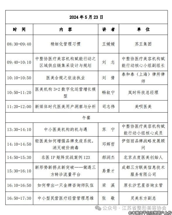 为了更好地帮助医疗美容机构加强内部管理、提升运管能力,中国整形美容协会将医疗美容机构帮扶计划升级为赋能行动和帮扶计划(以下简称赋能行动/帮扶计划),工作重点转为协助医疗美容机构提高在运营、推广、医技、医务、财税、供应链、人力资源等方面的实操能力。经与江苏省整形美容协会协商决定,2024年中国整形美容协会医疗美容机构赋能行动/帮扶计划(南京站)培训活动定于2024年5月22-23日在南京召开。